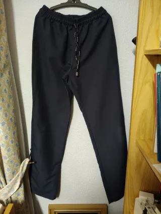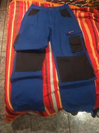 Pantalones de trabajo de color azul, con un diseño moderno y funcional. - Cintura elástica con cordón ajustable. 50 cm extendida - Bolsillos laterales. - Bolsillos traseros. - Tejido texturizado. El color es mas oscuro. Tengo 3 u. Dos talla M y uno S.