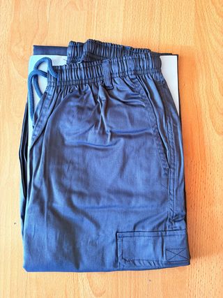 Pantalón de trabajo azul marino, sin estrenar. Lleva bolsillo lateral. Talla 52. Cintura elástica. - Tejido resistente. - Bolsillo lateral. - Cintura elástica.