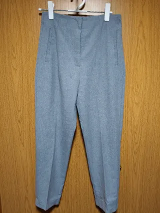 Pantalón de vestir de Zara en color gris, muy elegante y fácil de combinar. ✔️ Talla M ✔️ Tiro alto (muy favorecedor) ✔️ Corte recto ligeramente ajustado ✔️ Tejido con buena caída ✔️ Bolsillos laterales decorativos ✔️ Cierre con botón y corchete En muy buen estado, apenas usado. 📏 Medidas (sobre plano): Cintura: 37 cm Cadera: 49,5 cm Tiro: 31 cm Largo desde entrepierna: 66 cm Largo total: 96 cm