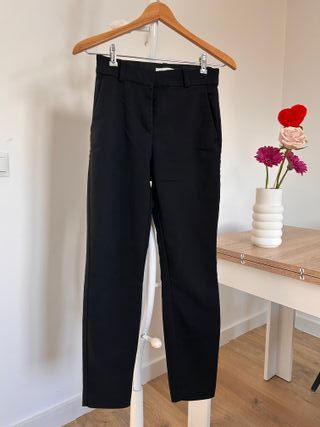 Pantalones de vestir de la marca Zara en color negro. Un básico elegante para cualquier ocasión. - Diseño clásico y atemporal. - Corte recto. - Cierre de cremallera y botones.