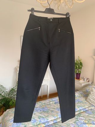 Pantalones de vestir de corte clásico. - Color negro. - Cintura con trabillas para cinturón. - Cierre de cremallera y botón. - Aunque en la etiqueta pone talla 42, realmente es una 40/L