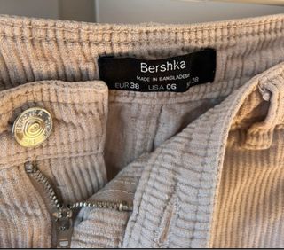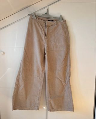 Pantalones de pana de corte ancho Bershka y pantalones de vestir blanco de Zara