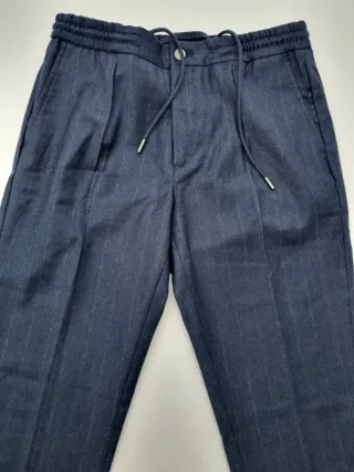 Pantalón de vestir para hombre con un diseño elegante y moderno. 100% sin usar. - Tejido con finas rayas verticales. - Cintura elástica con cordón ajustable. - Bolsillos laterales.