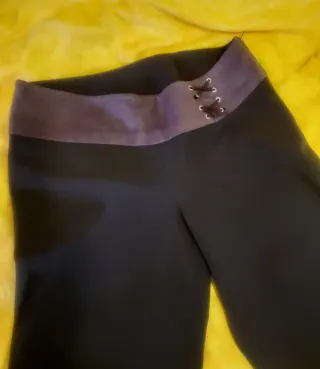 Pantalones de vestir con detalle de cordones en la cintura marrones algo elásticos talle bajo ,hay otros marrones de vestir pata de bajo ancha otro turquesa y otro blanco de vestir el precio es por unidad ,el primero tiene un par de puestas los demás nuevos . - Cintura con cordones