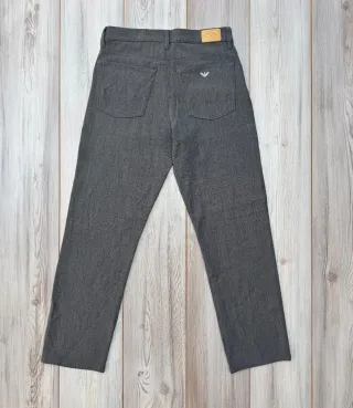 Pantalón vestir/traje Georgio Armani Jeans en color gris oscuro, con un diseño limpio y elegante que encaja tanto en looks formales como smart casual. Confeccionado con un tejido de calidad premium, ofrece un corte recto/slim muy favorecedor y cómodo. Detalles minimalistas con el icónico logo metálico en el bolsillo trasero, reflejando el estilo sofisticado y atemporal de la marca italiana. Ideal para oficina, eventos o combinar con prendas más casuales para un look moderno. ✔ Talla: M (Largo:105cm, Ancho:40cm) ✔ Color: Gris oscuro ✔ Material: Tejido de vestir de alta calidad ✔ Estado: Muy bueno ✔ Detalles: Logo Emporio Armani metál