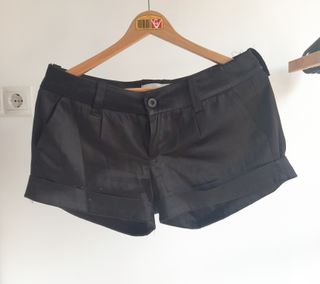 Pantalón corto negro de vestir de tela satén Talla: 38 Nuevo