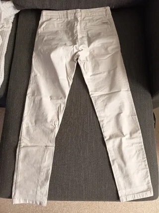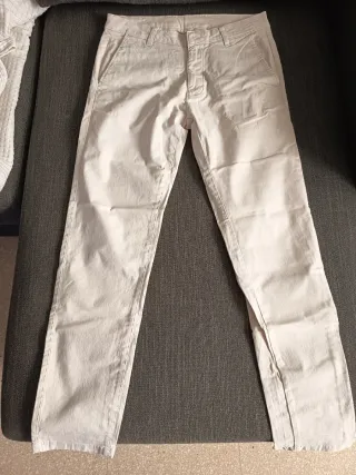 Pantalones de vestir de Massimo Dutti en color blanco. - Diseño elegante. - Tejido cómodo. Tienen una pequeña mancha debajo del bolsillo (ver fotos)