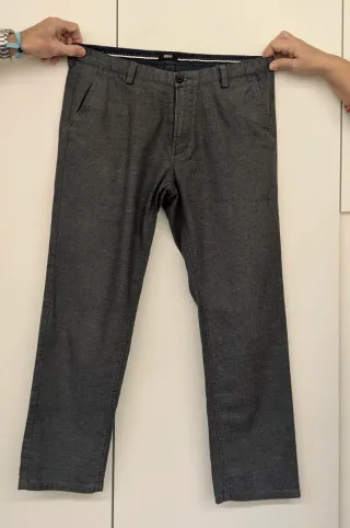 Pantalones de vestir de la marca Hugo Boss en color gris. Talla 42. • Usados pero en buen estado.