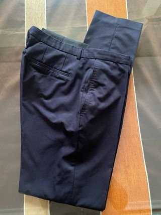 Pantalón de vestir para hombre en color azul marino. Se encuentra como nuevo. - Corte clásico. Talla 46 S - Tejido de alta calidad. - Cierre de cremallera y botón. Precio negociable