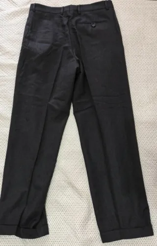 Pantalón de vestir de alta confección. - Corte clásico. - Bolsillo trasero con botón. - Tejido de calidad. - Bolsillos horizontales. - Tejido lana - poliéster. - Usado una sola vez.