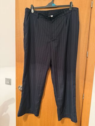 Pantalón ancho de vestir con rayas diplomáticas. Un básico elegante para cualquier ocasión. - Corte ancho. - Diseño de rayas verticales. - Cintura elástica para mayor comodidad.