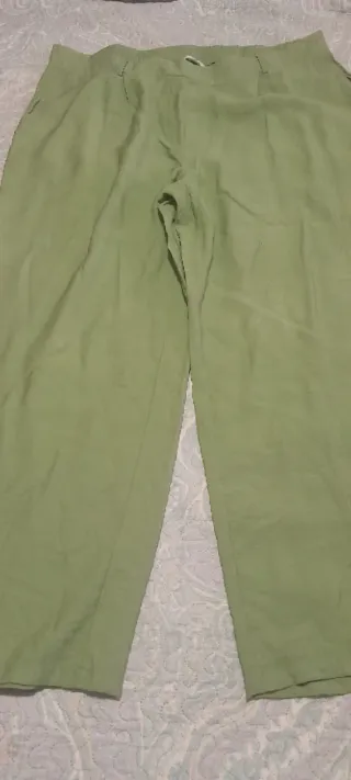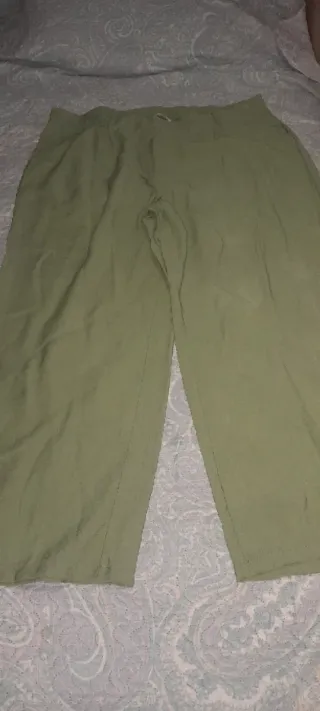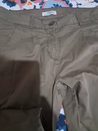 Pantalones de vestir en un tono verde oliva. Son cómodos y versátiles. - Cintura con trabillas para cinturón. - Cierre de botón y cremallera. - Bolsillos laterales. - Dobladillo en los bajos.