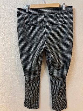 Pantalón de vestir con estampado de cuadros. - Diseño clásico de cuadros. - Cintura con trabillas para cinturón. - Cierre de botón y cremallera. - Talla 38. - Muy cómodo y en muy buen estado.