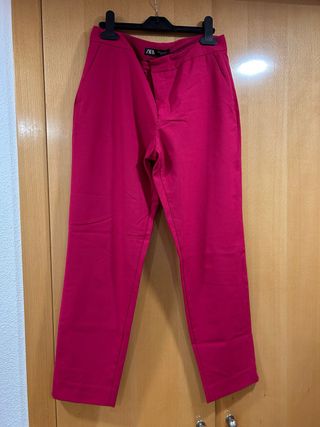 Pantalón de vestir de la marca Zara en color rojo. Talla L. Como nuevos, como se puede observar en las fotos. Envío rápido. - Cintura elástica. - Bolsillos laterales.