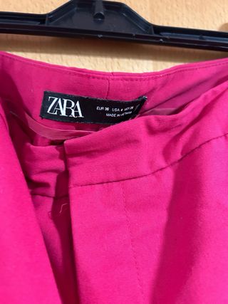 Pantalón de vestir de la marca Zara en un llamativo color rosa. - Corte recto. - Cierre de cremallera y botón. - Bolsillos laterales.