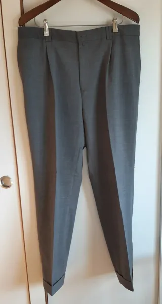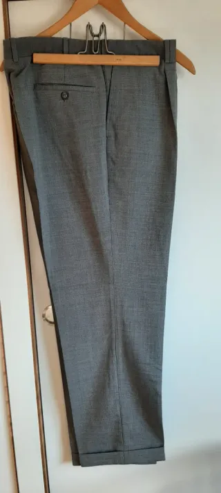 Lote 2 pantalones de vestir de hombre – tallas 48 y 50 Vendo lote de dos pantalones de vestir de hombre, usados pero en muy buen estado. Ideal para oficina, eventos o para renovar el armario. 🔹 Incluye: Pantalón Burberry – talla 50 ES Color: gris Largo: 104 cm Tejido: 60% lana virgen, 40% poliéster Tela un poco más gruesa, ideal entretiempo/invierno Pantalón Renoir – talla 48 ES Color: gris crema Largo: 104 cm Tejido: 60% lana virgen, 40% poliéster Tela más fina, estilo veraniego 🔹 Or