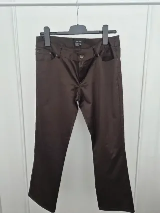 Pantalón de vestir Zara con un ligero brillo. De color marrón. Talla 42. Tiro medio. Crop flare.