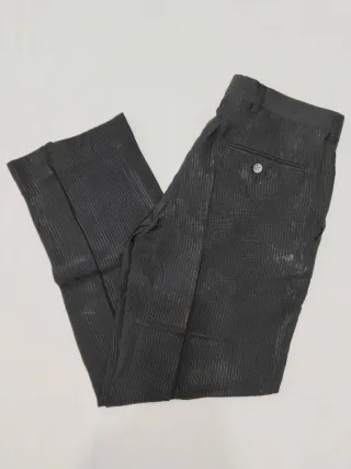 Pantalón CERIMONIA de vestir clásico con un diseño de rayas verticales. Pantalón clásico, ideal para eventos, bodas o un look de oficina sofisticado. Diseño en color oscuro con fina raya diplomática. Aporta un toque muy elegante y formal. Marca: CERIMONIA. Estilo: Corte recto clásico, cierre seguro (cremallera y botón) y raya planchada. ¡Escríbeme si tienes alguna duda o necesitas medidas exactas!