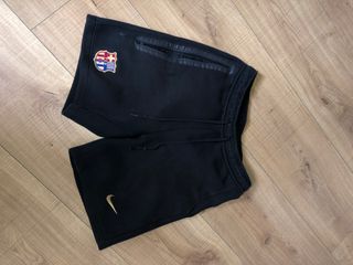 Pantalón corto deportivo de color negro con el escudo del FC Barcelona y el logo de Nike. - Escudo del FC Barcelona bordado. - Logo de Nike dorado. - Cremallera en uno de los bolsillos.