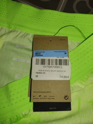 Pantalón corto de partido del FC Barcelona (Player Version). 3a equipación temporada 2024/25. Color verde militar. - Nuevo a estrenar. - Comprado en la tienda oficial el 14 de enero (tengo ticket de compra). - PVP original: 74,99€