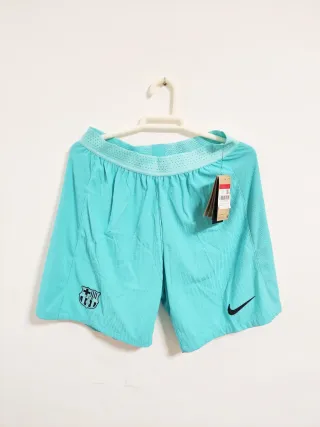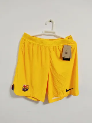 Pantalones cortos de fútbol del FC Barcelona, marca Nike. Están en excelente estado, como nuevos. Son verdaderos - Escudo del FC Barcelona bordado. - Logo de Nike en la pierna. - Cintura elástica con cordón.