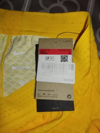 Pantalón corto de partido del FC Barcelona (Player Version). 3a equipación temporada 2023/24. Color amarillo. - Nuevo a estrenar. - Comprado en la tienda oficial el 14 de enero (tengo ticket de compra). - PVP original: 69,99€