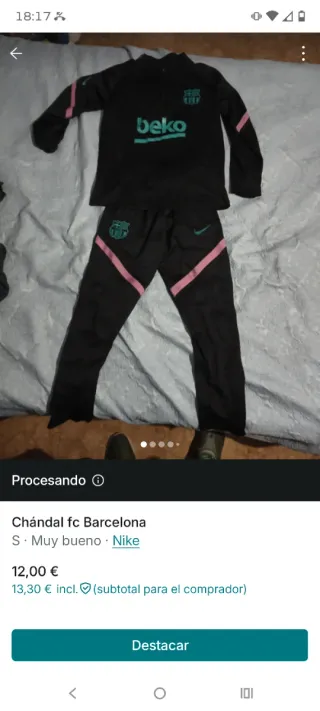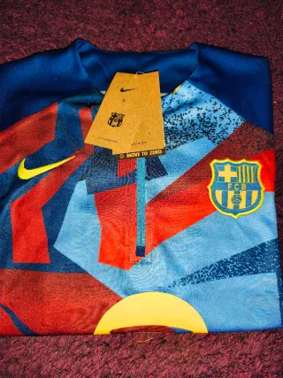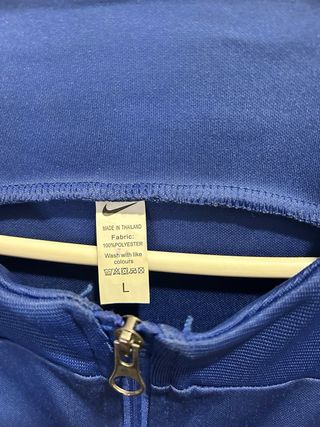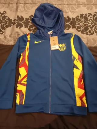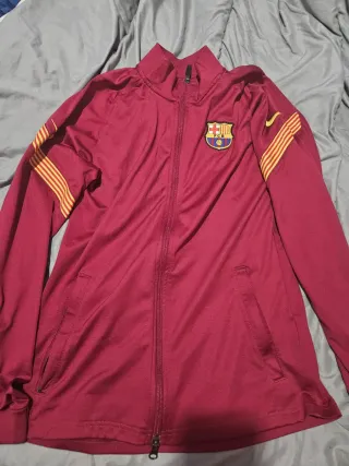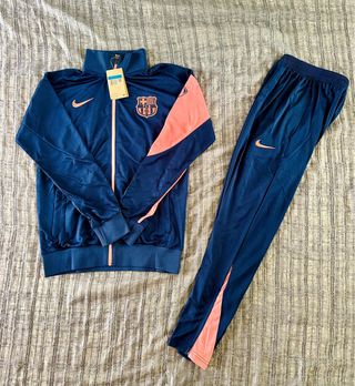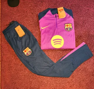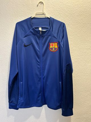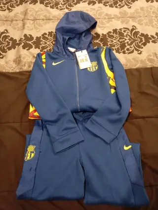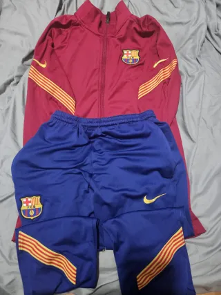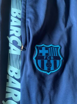 ¡Força Barça! Pongo a la venta este chándal completo del FC Barcelona (chaqueta y pantalón) en color azul real. Es la equipación oficial de entrenamiento de Nike, ideal tanto para hacer deporte como para uso casual. Detalles del artículo: • Estado: En muy buenas condiciones. El tejido mantiene su elasticidad y el color sigue vibrante. • Diseño: Escudo del club bordado con relieve de alta calidad y logo de Nike (Swoosh) en negro con borde azul. • Tecnología: Fabricado en 100% poliéster transpirable, ligero y cómodo. • Chaqueta: Cierre de cremallera completa con tirador metálico, bolsillos laterales y detalles microperforados en los a