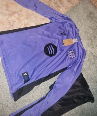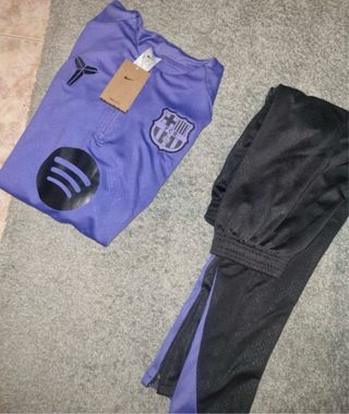 Conjunto deportivo del FC Barcelona. - Parte superior de color morado con detalles. - Pantalón deportivo negro con detalles morados. -No ha sido estrenado ya que quedaba pequeño