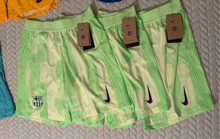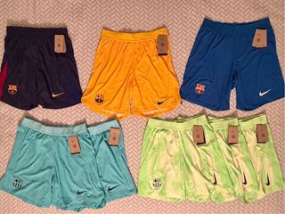Conjunto de pantalones cortos de fútbol FC Barcelona, versión jugador. PRODUCTOS OFICIALES DEL FC BARCELONA Modelos y tallas: - Verde: Talla M - Turquesa: Talla XL - Azul claro: Talla L - Amarillo: Talla L - Azul oscuro: Talla M Precios y detalles en mi perfil.