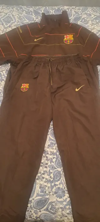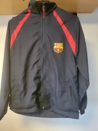 Conjunto deportivo del FC Barcelona. - Chaqueta con cremallera completa. - Pantalón a juego. - Logos del club y patrocinador visibles. /Usado 2 veces/ el año pasado me costó 140€ seria vende por 50€ repito Usados 2 veces solo