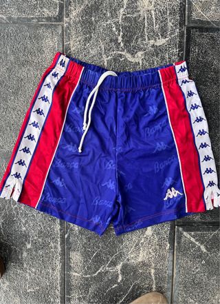 Pantalones cortos deportivos con un diseño llamativo. - Cintura elástica con cordón. - Detalles de rayas laterales. - Logo de Kappa repetido en la tela.