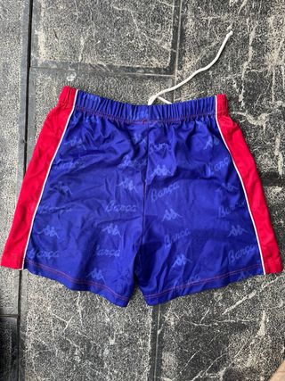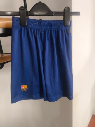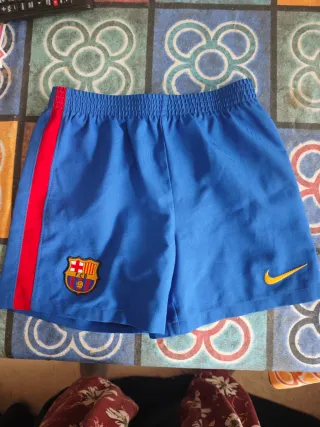 Pantalón corto deportivo del FC Barcelona. - Diseño con franja lateral roja. - Escudo del club en la parte frontal. - Logo deportivo en contraste Talla 5-10 años. 110-116 cm