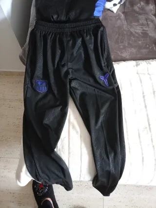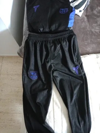 Conjunto deportivo del FC Barcelona con detalles inspirados en Kobe Bryant. - Diseño en color negro con detalles en morado. - Tejido con textura. - Incluye chaqueta y pantalón.me lo he puesto una vez lo vendo porque me va justo.no bajo precio.tiene dos usos.