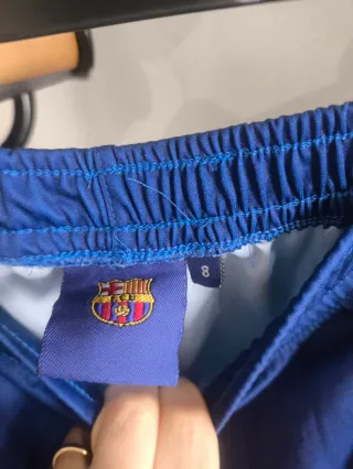 Conjunto deportivo de chándal del FC Barcelona. - Chaqueta azul con logo. - Pantalón azul con cordón naranja y logo. Condición: 8/10 – En muy buen estado 🏷️ Marca: Nike x Fc Barcelona 📏 Talla: Aunque marque una L queda como una M 🔍 Detalles: Sin desperfectos. 🚚 Envío rápido: 24/48 horas. 🎁 Empaquetado cuidadoso: Producto protegido y en bolsa sellada. 💬 ¿Tienes dudas? Escríbeme sin compromiso, ¡respondo súper rápido!