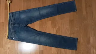 Combinan el diseño tradicional de los jeans del Oeste con detalles de los pantalones chinos clásicos. Talla 32/34 Bragueta de botones. Bolsillos insertados con remaches de refuerzo, bolsillo para monedas colocado hacia el centro. Bolsillos traseros.