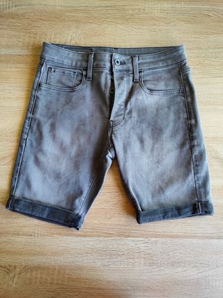 Vaqueros cortos G-star modelo 3301 slim. Color gris. Talla 29. Pequeña mancha al lado de un bolsillo delantero apenas visible. Precio nuevo 90 euros.
