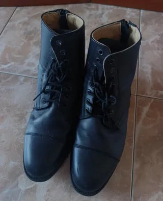 Conjunto de equipación para equitación en buen estado. Utilizando en un curso del ciclo de Técnico en guía en el medio natural y de tiempo libre. - Pantalones de montar negros con rodilleras.Talla S. - Botas altas de equitación negras. número 42. - Casco de hípica negro. 55cm.