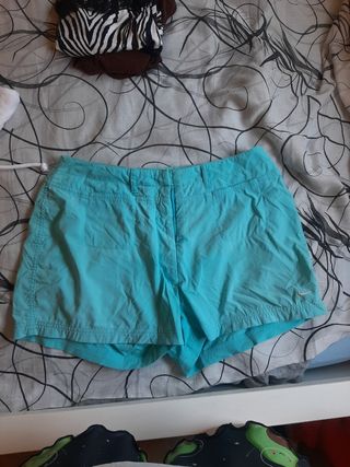 Shorts nike, tienen más de 20 años Son de color azul celeste, talla 40 y tienen una pequeña mancha en el culo por el paso de los años, aparece en una de las fotos. Son de un material estilo ropa deportiva pero no de algodón, tipo impermeable