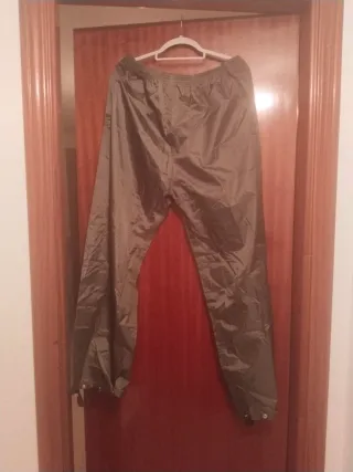 Pantalones impermeables Oxford Rainseal. - Color negro. - Talla L (equivalente a 42-44 / 52-54). - Diseño con ribete blanco en los laterales. - Cintura elástica y bajos ajustables. lo he usado 1 vez, y me queda corto. Yo mido 1,93, o sea que me queda corto. si mides 170 a 188, te valen.