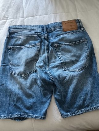 Vendo un pantalón vaquero corto de Jack Jones, talla S. Es de color azul y corte regular fit. - Corte regular fit. - Ideal para primavera/verano.