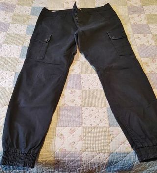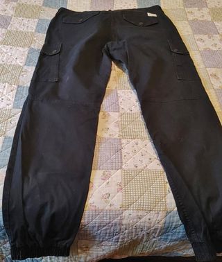 Pantalones tipo cargo para hombre. Talla M. Aproximadamente tiene 44 cm de cintura, 27 cm de tiro y 99 cm de largo - Color negro. - Bolsillos laterales con solapa.