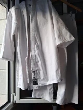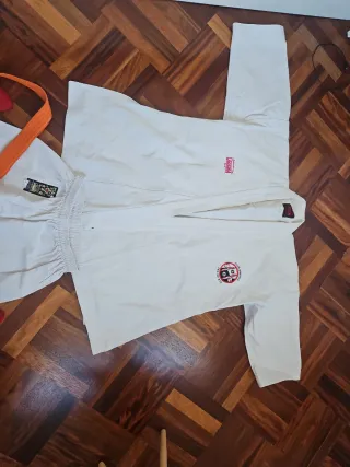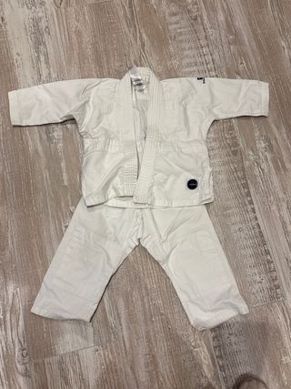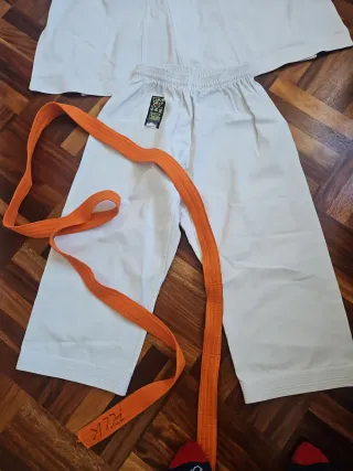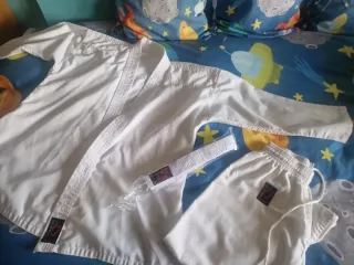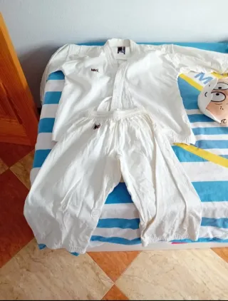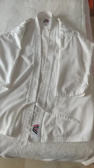 Uniforme de kárate para niño, ideal para entrenamientos. Se encuentra en perfecto estado y la tela es resistente, ideal para una edad de 7 a 8 años. Sólo se ha usado unas 6 a 8 veces. - Tejido resistente y cómodo. - El kimono incluye: Chaqueta, pantalón y cinturóm. - Diseño clásico de uniforme de artes marciales.