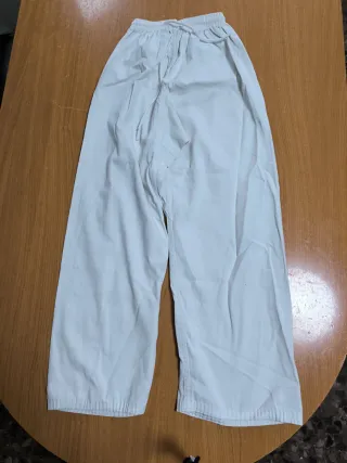 Pantalón de artes marciales, ideal para taekwondo o karate. Talle equivalente a 160 - Cintura elástica con cordón. - Piernas amplias para mayor libertad de movimiento.