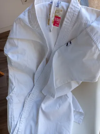 Traje de karate blanco, listo para entrenar. - Talla 150 cm (59 in). - Incluye etiqueta original. El pantalón está usado.