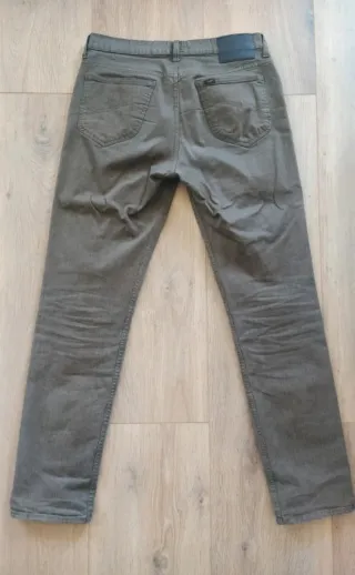 Pantalón de la marca Lee en color gris. - Etiqueta de cuero con logo en la parte trasera. - Bolsillo trasero con etiqueta de la marca.