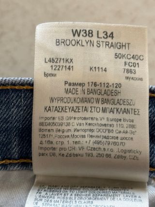 Pantalones vaqueros Lee modelo Brooklyn Straight. - Talla W38 L34. - Corte recto. - Fabricados en Bangladesh.