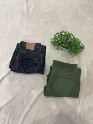 Pack de 2 pantalones Levi’s originales, ideales para el día a día y muy fáciles de combinar. 🔹 Pantalón chino Levi’s Color verde oliva. Corte moderno tipo tapered, cómodo y favorecedor. Perfecto tanto para looks casual como algo más arreglados. Tejido resistente y de buena calidad, típico de la marca. 🔹 Vaquero Levi’s negro/gris oscuro Diseño clásico, atemporal y muy versátil. Denim resistente, ideal para cualquier temporada y para combinar con todo. 👖 Estado: Bueno / muy bueno (uso normal, sin rotos ni defectos importantes) ✔️ Originales Levi’s 📦 Se venden en pack, ideal para ahorrar y renovar armario con básicos de calidad. Si nece