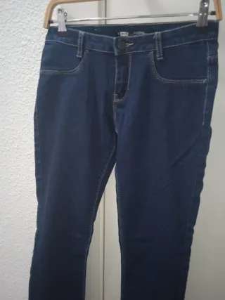 Pantalón estilo pitillo/skinny en color gris oscuro. Tiene un uso porque me queda pequeño ya. Son muy cómodos y se ajustan bien.