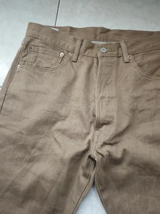 Pantalones Levis 501 de color marrón. TOTALMENTE NUEVOS,nunca usados. Mirar medidas,no etiqueta.los lave y como son de los antiguos de antes encogieron una talla,cosas que pasaba con el primer lavado. Es decir,equivalen a una talla W32 Nunca se han usado ya que se me han quedado pequeños. Es un color difícil de conseguir en el formato 501. REPITO MIRAR MEDIDAS EN FOTOS. - Diseño de cinco bolsillos. - Cierre de botones.