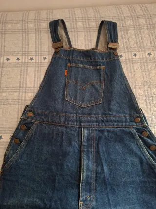 Peto vaquero Levis de color azul. Un clásico del estilo. - Tirantes ajustables con hebillas. - Bolsillo en el pecho con el logo. - Cierre lateral con botones.